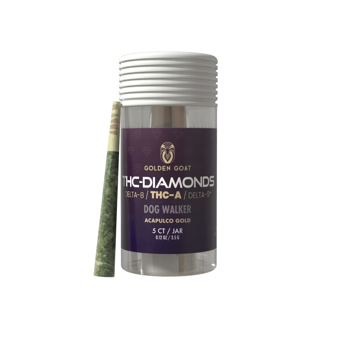 Golden Goat THC-A Diamond Pre-Rolls, 5ct – Dog Walker, Acapulco Gold (Indica)