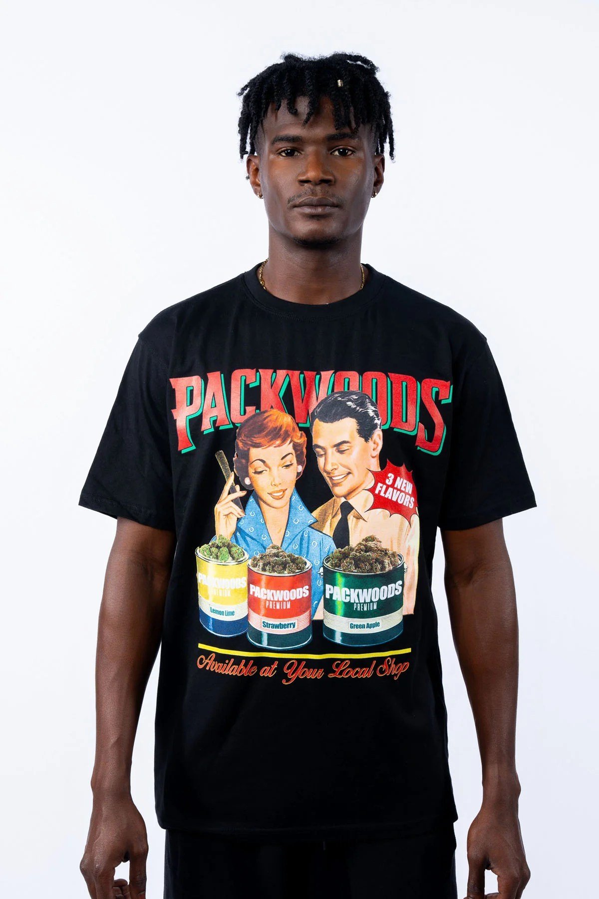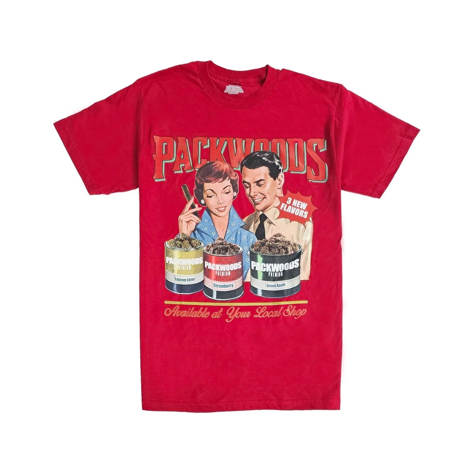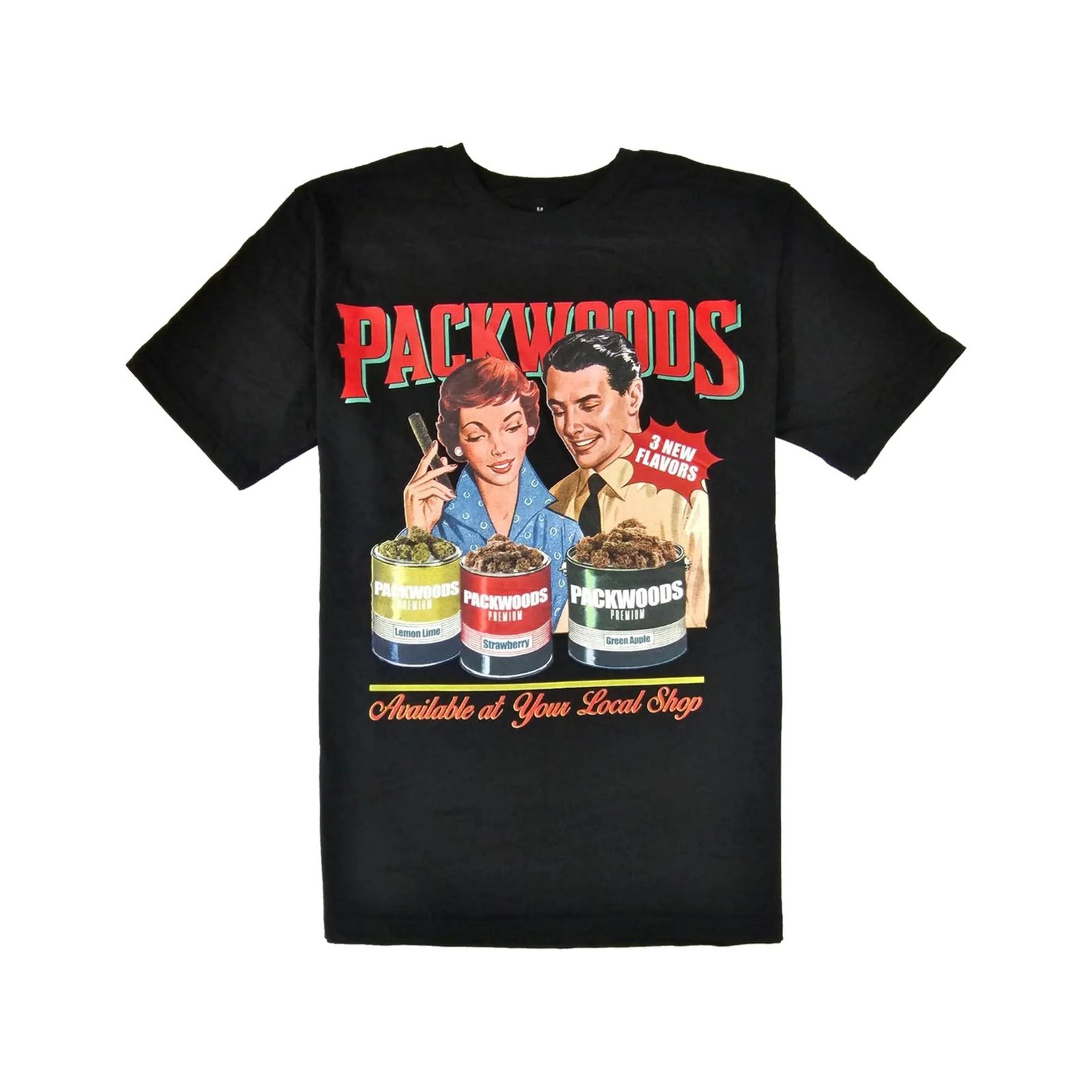 100% Cotton Packwoods T-Shirt with original graphic artwork on front.